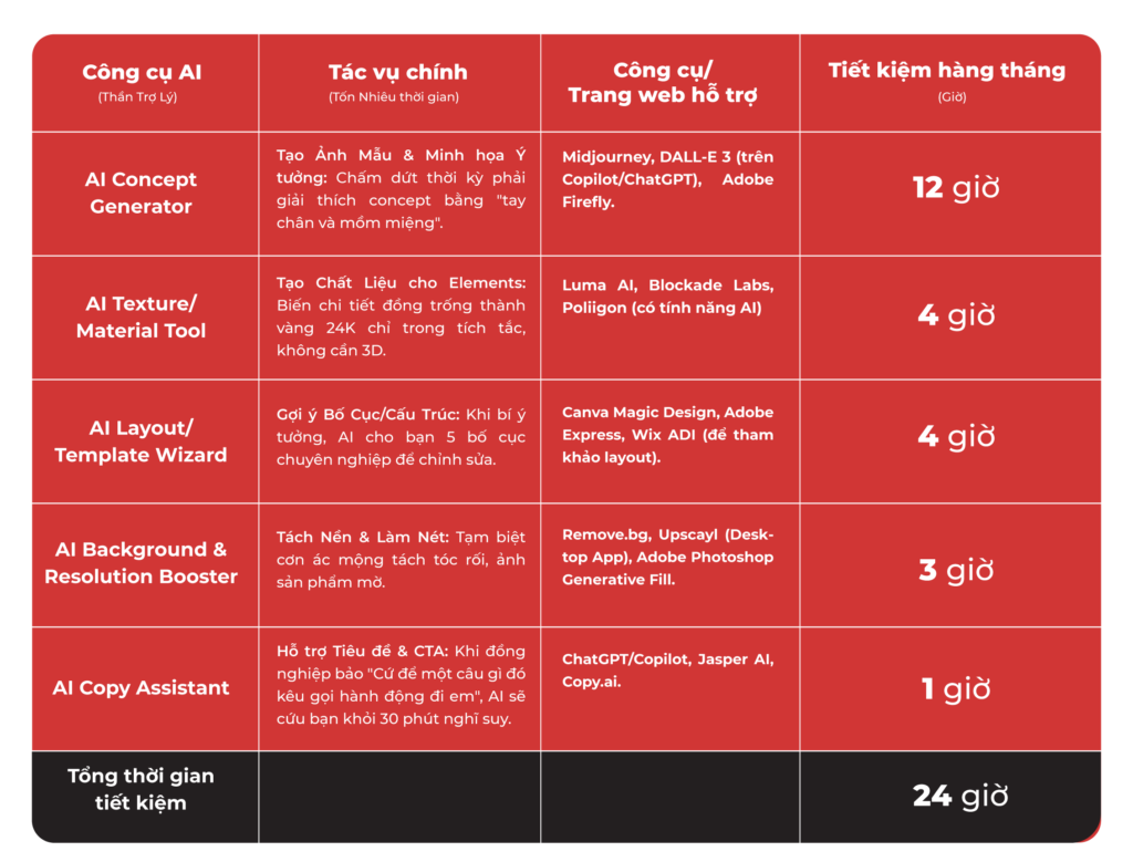 Dưới đây là phân tích “thô nhưng thật” về cách tôi đã đẩy lùi giờ tăng ca và tìm lại cuộc sống (hoặc ít nhất là kịp giờ cơm tối) nhờ các công cụ AI, kèm theo danh sách các “trợ lý” cụ thể mà bạn nên dùng ngay! Kể cả việc bạn không phải là 1 designer chuyên nghiệp nhưng khi cần thiết kế bài viết này sẽ giúp bạn “tăng tốc” và chỉnh chu hơn .