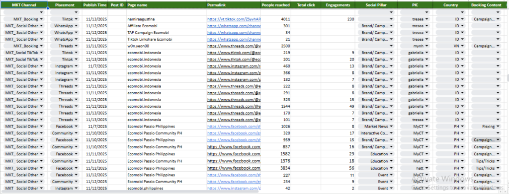 Ngoài ra, file báo cáo của team sẽ chứa rất nhiều dữ liệu như đường link, lượt tiếp cận, ngày đăng tải, nguồn đến từ kênh truyền thông nào theo từng tuần. Vì vậy, khi số lượng dữ liệu càng nhiều đồng nghĩa với việc lọc báo cáo gặp khó khăn hơn, dễ bị lấy nhầm dữ liệu giữa các cột, các ô khi set công thức nhỏ lẻ cho từng hạng mục.