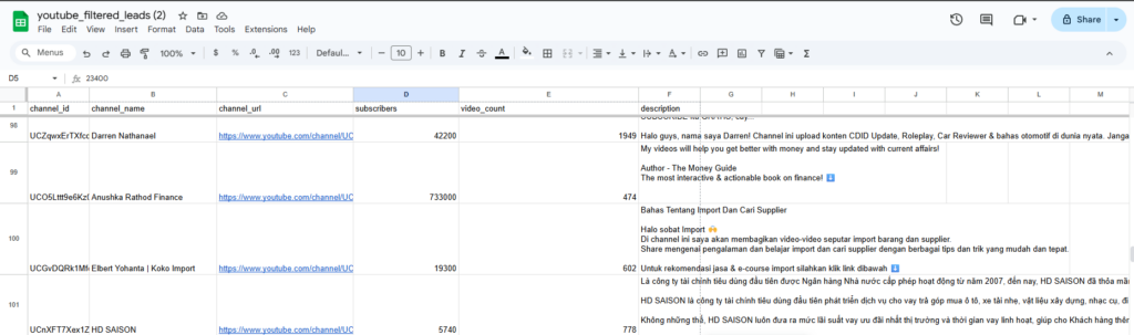 So I built a simple workflow using ChatGPT + Google Colab that now helps me identify YouTube leads at scale—without paid tools.