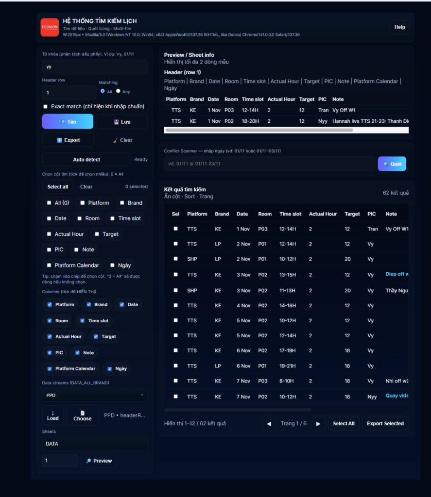 Trong môi trường doanh nghiệp, việc quản lý lịch, phân ca hoặc lưu trữ thông tin vận hành trên Google Sheets là điều rất phổ biến. Tuy nhiên, khi dữ liệu phình to, việc tìm kiếm trở nên chậm, khó thao tác, dễ sai sót và khó kiểm soát.
