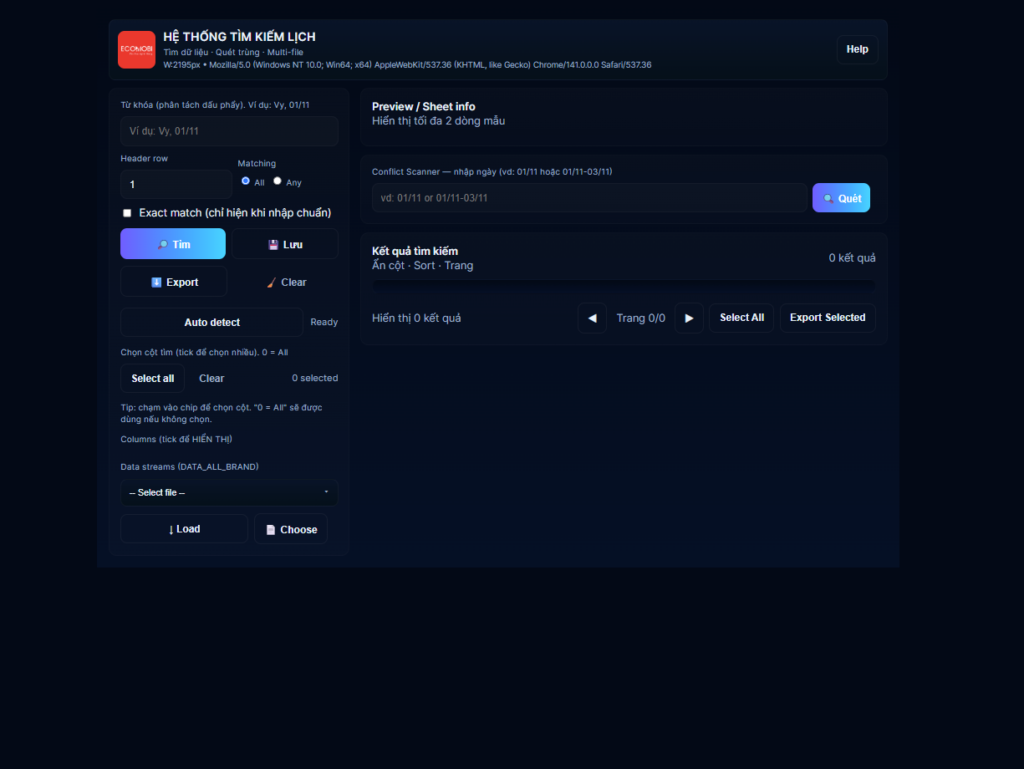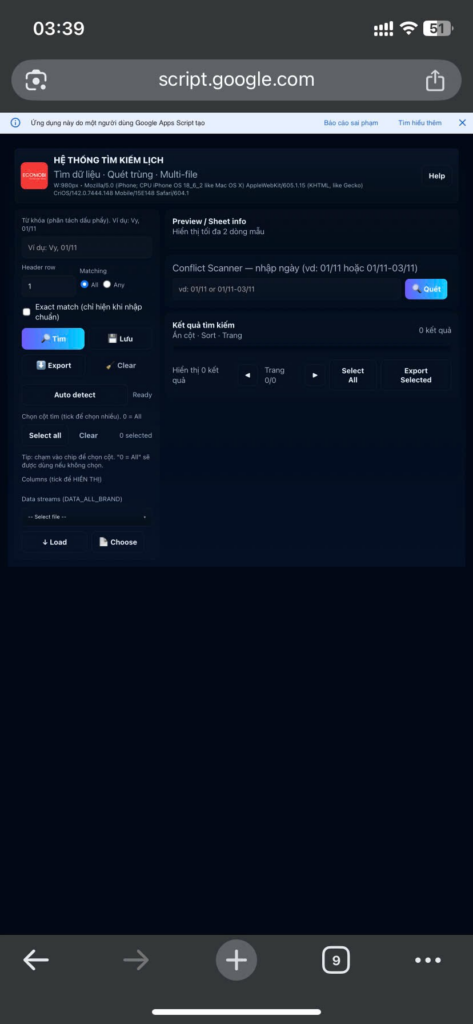 Tôi quyết định xây dựng Hệ Thống Tìm Kiếm Lịch – một công cụ tra cứu web tự động, chạy trên nền tảng có sẵn của doanh nghiệp: Google Sheets + Google Apps Script.