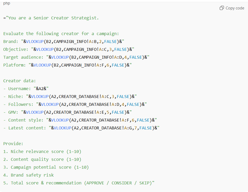 STEP 3: Let AI Evaluate Creators (TAB 3 – AI_SCORING)