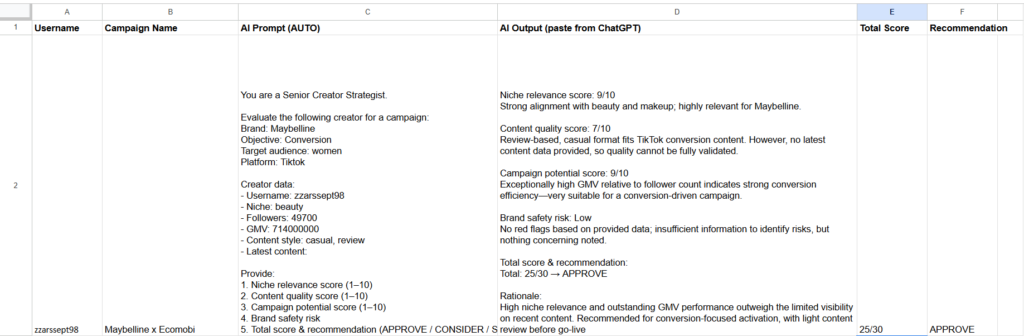 AI has fundamentally changed how I finding and shortlisting creators. By combining structured data with AI evaluation, creator managers can work faster, think more strategically, and deliver better results for brands.