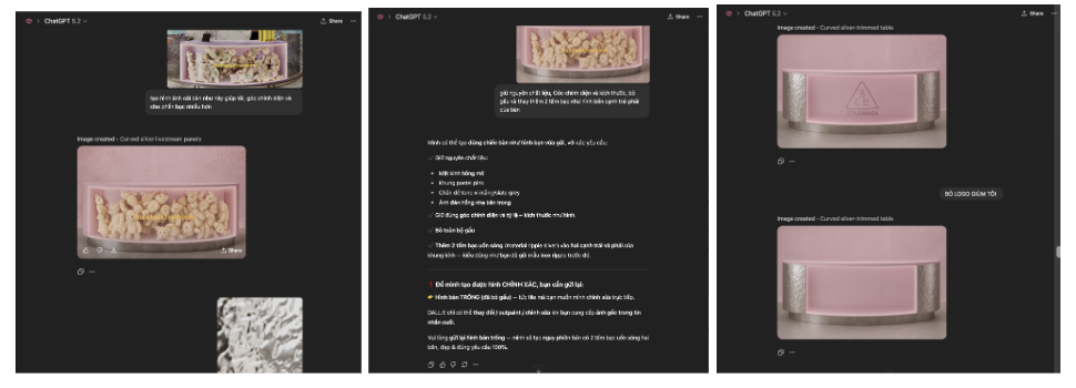 Từ khi bắt đầu dùng ChatGPT, quy trình làm việc của mình gọn gàng hơn hẳn. AI giúp mình diễn giải lại idea bằng hình ảnh và gợi ý visual, đạo cụ đúng tinh thần ngay từ đầu. Nhờ vậy, visual brief trở nên mạch lạc hơn, team design dễ hình dung và có thể triển khai nhanh mà không cần mất thời gian “đoán ý” như trước.